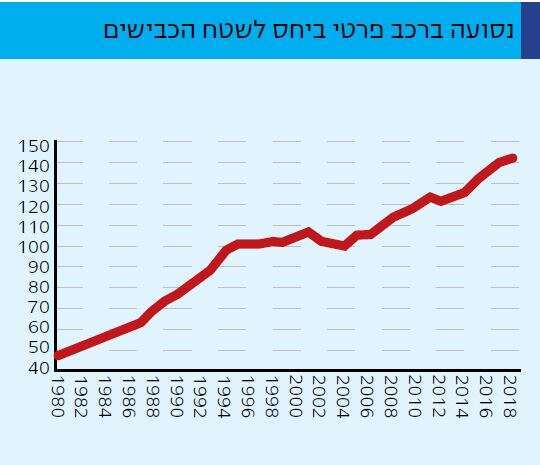 למרות ההשקעות הגדולות בתשתיות בעשור האחרון, אלה לא הצליחו להדביק את קצב העלייה במספר הרכבים שעולים על הכביש. קצב הגידול של הנסועה ברכב פרטי בעשור האחרון עומד על 4.6% בשנה, והוא גבוה גם בהשוואה בינלאומית, וזאת בגלל קצב הגידול הגבוה של האוכלוסייה בישראל. כ־65 אחוזים מהעובדים בישראל נוסעים לעבודתם במכונית פרטית, מה שמעמיק את העומס על תשתיות התחבורה. בנק ישראל מעריך את הפער בין נסיעה באוטובוס ובין נסיעה ברכב פרטי ב־10־15 שקלים ליום עבודה, סכום לא גבוה שמסביר מדוע רבים מעדיפים לנסוע ברכב פרטי לעבודה, בוודאי כאשר ברשותם ממילא רכב כזה.