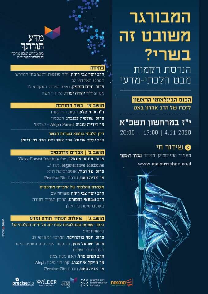 כך מנסה הרב יוסף צבי רימון, להסביר עד כמה הדיון ההלכתי בנושא הבשר הנוצר מהינדוס רקמות רחוק מלהסתיים. ביום רביעי הקרוב יתקיים בבית המדרש "מדע תורתך" למחקר וטכנולוגיה עתידנית מיסודו של סולמות ושל המרכז האקדמי לב שהרב רימון עומד בראשו, כנס בינלאומי שידון בהיבטים ההלכתיים של בשר משובט ואיברים מודפסים. הכנס ישודר ביום רביעי בשעה 17:00 בשידור חי באתר מקור ראשון.
