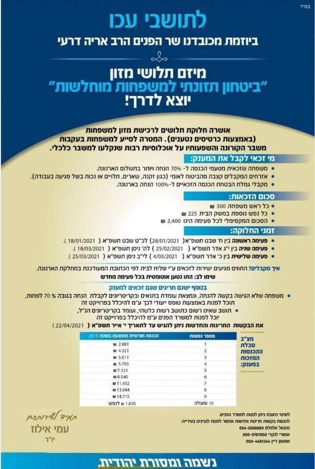 "אריה הוא המשביר": מענקי קורונה הפכו לתעמולת בחירות