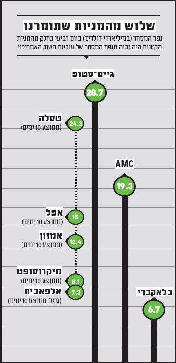 "אני לא רואה חשש לזליגה למניות הגדולות ואל המדדים המובילים", מציין אנליסט המעורה בנעשה בוול סטריט. "זה בעיקר אמור להישאר במניות שוליים, שקל להקפיץ את המסחר בהן פי 100 ולהעלות את המניה במאות אחוזים".