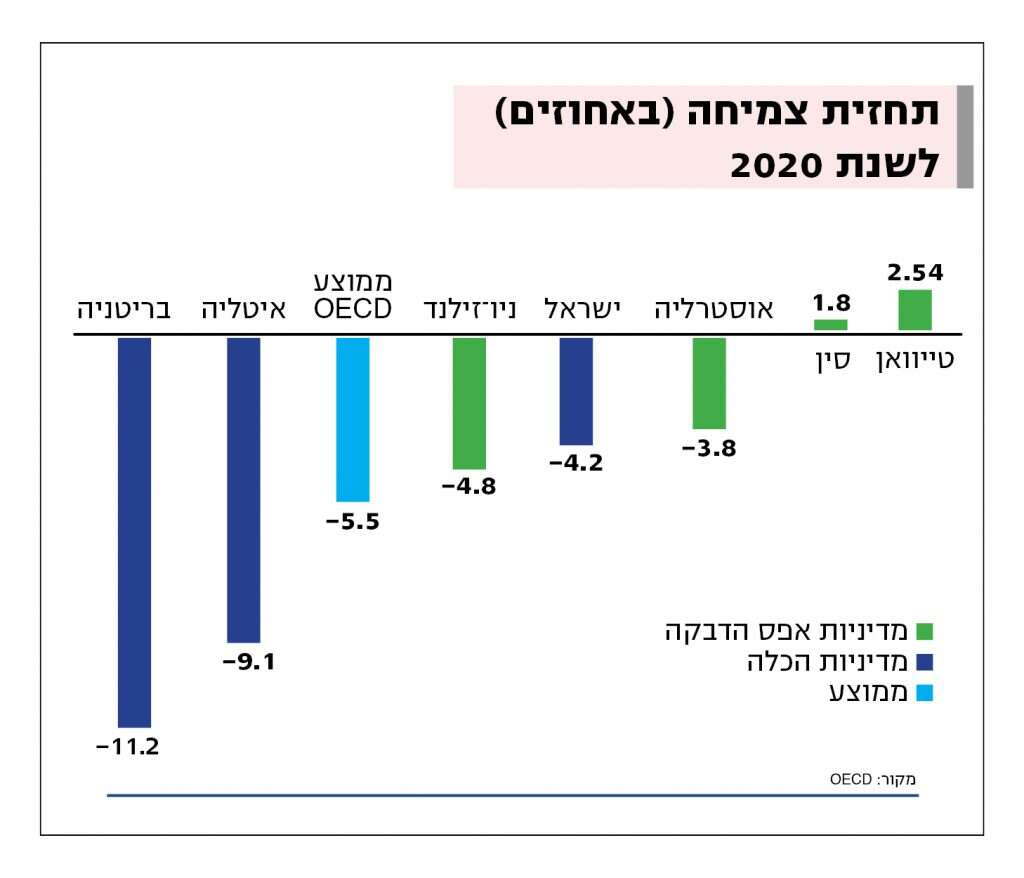 המחיר הכלכלי של סגר ממושך, כמו גם הלחץ הציבורי, הניאו את מרבית מדינות העולם מהגישה הזו. אבל בדיעבד מתברר שהמדינות שבחרו בשיטה נוקשה של אפס נדבקים ומיגור מוחלט של המגפה, אולי הפסידו יותר בטווח הקצר, אך ייתכן שבטווח הארוך הפגיעה הכלכלית אצלן תהיה נמוכה יותר. סין וטיוואן הן בין המדינות היחידות בעולם שהראו השנה צמיחה חיובית - בשיעור של כ־2 ו־2.5 אחוזים, בהתאמה. כל מה שהעולם המערבי לא מצליח לייצר בגלל הסגרים והמגבלות, מייצרים שם בלי הפסקה. ניו־זילנד ואוסטרליה רשמו ירידה בצמיחה בשנת 2020, אבל היא הייתה נמוכה משמעותית מזו של רוב מדינות המערב, והעתיד אצלן ורוד: כרגע אין דבר שמעיב על הצמיחה או מייצר חוסר ודאות כלכלית, ואין צורך להוציא סכומי ענק כדי לתמוך באזרחים ובעסקים. מסלול הצמיחה שלהן פנוי. ואילו אצלנו, ינואר 2021 רושם הפסדים אדירים הן בחיי אדם הן בכלכלה, כשהתהייה הגדולה עם היציאה מהסגר היא רק השאלה אם נשוב אליו בפורים או בפסח.