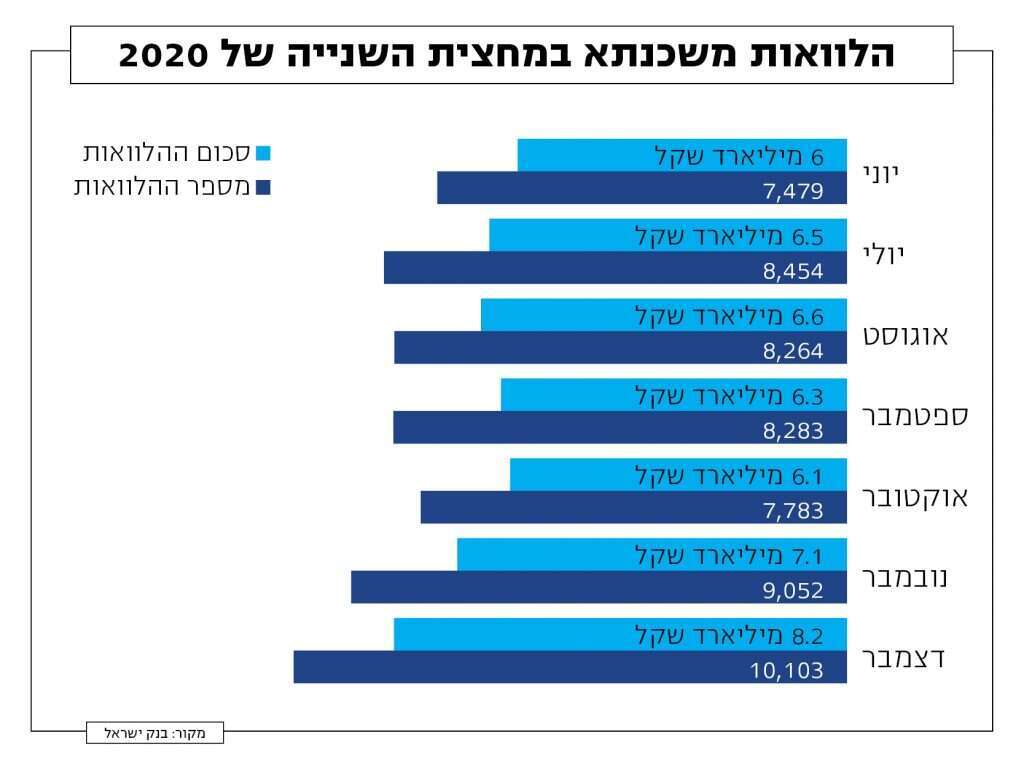 היקפי המשכנתאות שנלקחו בחודש דצמבר, היו גדולים בהרבה מהממוצע החודשי בשנים האחרונות. 2020 הסתיימה עם סכום שיא של הלוואות משכנתא – יותר מ־78 מיליארד שקל. הסיבה העיקרית היא הריבית הנמוכה בשוק. את ההוזלה בריבית היו אמורים הלווים להרגיש עוד יותר מאמצע החודש הקודם, בעקבות הוראת בנק ישראל המסירה את המגבלה על מסלול הפריים במשכנתא.