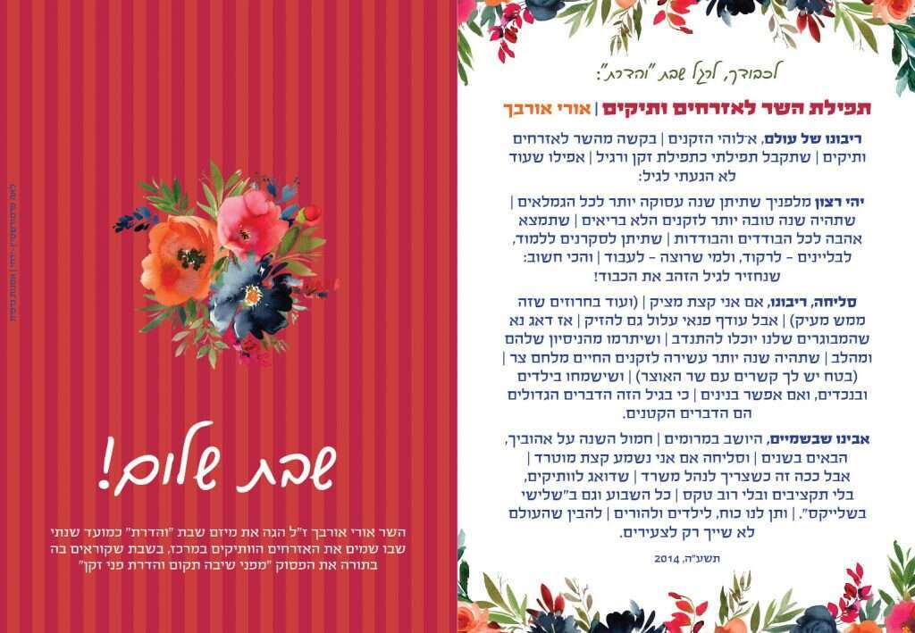 "השבת יכולה להשיג מספר מטרות", אומרת מיכל אורבך, אלמנתו של אורי ז"ל, "חשוב ללמד את הדור הצעיר לקיים את מצוות 'והדרת פני זקן', ובנוסף, השבת מחזקת את המודעות לכך שיש עוד הרבה מה ללמוד ולשמוע מהדור המבוגר. אם יש למשל בקהילה פרופסור בן 80 ומבקשים ממנו להעביר שיעור, אפילו בנושא ההתמחות שלו, זה ממחיש בדיוק את העניין".
