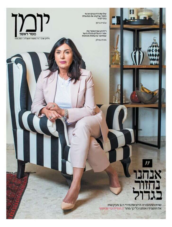 "אני רואה את התקופה הזאת כעוד הזדמנות. ללמוד ברמה האישית, להבין מה קרה ברמת המדינה והמפלגה שלי, ולהמשיך בעבודה. לא כל החיים נהיה באותם תפקידים, אבל תמיד נהיה בני אדם. נסתכל בעיניים לאחרים ולעצמנו, ונגיד שלא בגדנו בערכים שלנו. לא שיקרתי לעצמי. אולי יום אחד אצטער שלא השקעתי מספיק זמן בבית, בדברים אחרים שהייתי רוצה לעשות, אבל לא אצטער על הדרך שהלכתי בה שהיא לא דרך של נוכלות וקומבינה, לא כמו ששת הנוכלים שבראשם בנט", היא עולה למתקפה שתימשך במהלך השיחה. "אבל לא מרימים ידיים. מרימים את הראש וממשיכים להתמודד, לשמור על האינטרסים הלאומיים והביטחוניים של מדינת ישראל, בכל תפקיד שבו נהיה".
