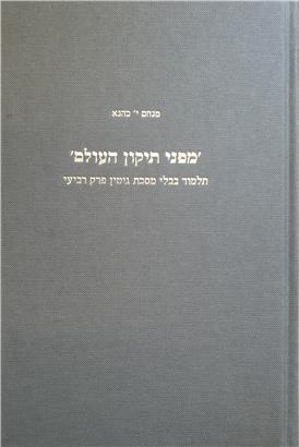 לאחרונה התפרסם ספרו של פרופ' מנחם כהנא, "מפני תיקון העולם", המציע פירוש מחקרי שיטתי לפרק הרביעי במסכת גיטין. כהנא התפרסם במחקריו הרבים וסוללי הדרך בתחום מדרשי ההלכה, והספר הנוכחי הוא ספרו הראשון בחקר התלמוד הבבלי.