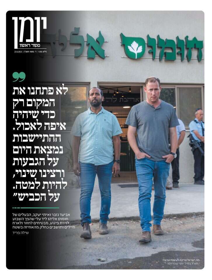 הטלטלה שעבר העסק שבניהולו, אומר אביעד, לא תרפה את ידיו. "גם אחרי הפיגוע הזה לא צריך לחשוב אם להפסיק", הוא אומר. "להפך, אנחנו נמשיך, נבנה עוד אלף חנויות, נהיה עוד יותר בשטח. כשמדברים על תקופות כמו הקמת המדינה והחלוציות, יש התרגשות גדולה מהדמות של הצבר, יליד הארץ שהתחיל לדבר בחוצפה. מספרים על זה בסוג של הערצה. הצבריות הזאת צריכה לקבל זריקת טירוף, צריך לחדש ולרענן אותה. למה אנחנו צריכים להיות מנומסים בחשיבה שלנו? זה לא הגיוני. אנחנו כמו אישה מוכה, ילד כאפות. הערבים מסתובבים איפה שהם רוצים, ביו"ש, בתל־אביב. זו הפקרות. אם מישהו היה נכנס לבית שלך וישן במיטה של הבת שלך, היית אומר לו לעוף מיד. אבל ברמה הלאומית זה נהיה סוג של הגיוני".