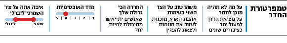 בסופו של דבר, אני אומרת לה, יש בחיים גם הכרעות של שחור-לבן. כן או לא מדינה פלסטינית; כן או לא שוויון בנטל. והנה, סעיף קטנטן כמו עילת הסבירות הפך פתאום לאסון קיומי. איך אידיאולוגיית האפור יכולה לעבוד בסוגיות בלתי הפיכות שההשלכות שלהן רציניות כל כך? מיה מבהירה שיש לה דעות מגובשות בהחלט בנושאים הללו, כאלה שהיא מתעקשת עליהן, אבל כעת היא מבקשת להשיב במבט של מביטה מהצד. "אנחנו לא יכולים לדבר ישר על הדברים הכי מורכבים. כדי להצליח לעבוד יחד צריך מכנה משותף להסכים עליו. ברגע שנדע מהו, נוכל ללכת על הסעיפים שאנחנו לא מסכימים בהם. צריך דיון נוקב וישר על המקומות שאנחנו לא מסכימים עליהם. לא מתוך פשרה, גם לי יש קו אדום. אבל מנקודת מבט אחרת. הרי כשאני יודעת מה הקו האדום של בן משפחה שלי אני מכבדת את המקום שלו. נכון, במדינה זה מורכב יותר, כי אנחנו מדברים על תפיסות עולם. הרי אפילו מאחורי ההגדרות 'כיבוש' או 'התיישבות' עומדים שני עולמות שלמים ושונים. אבל רק אחרי שניגע בלב הדבר נוכל לדבר על זה".
