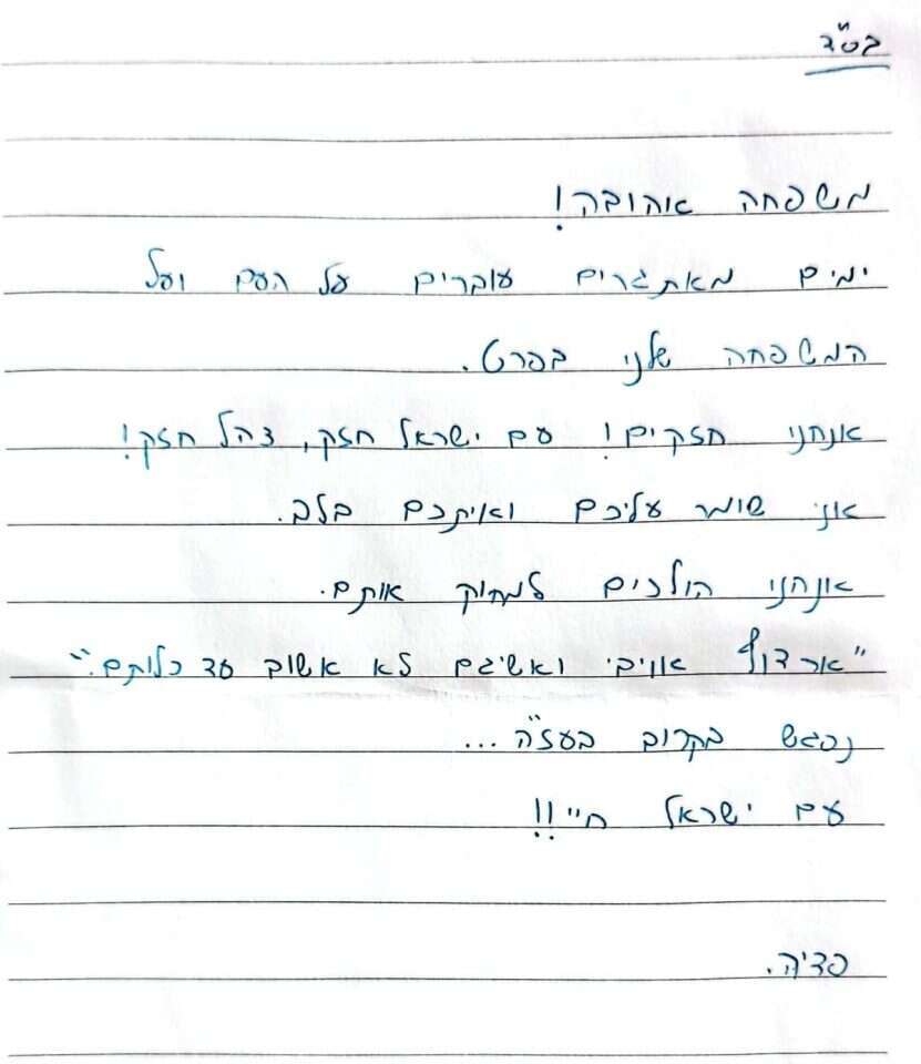 פדיה לא היה בבית משמחת תורה. אחרי שבן דודו, אלחנן קלמנזון הי"ד, נפל בקרבות בבארי, הוא שלח למשפחתו פרחים עם פתק: "אנחנו חזקים, עם ישראל חזק. אני שומר עליכם ואתכם בלב, אנחנו הולכים למחוק אותם".