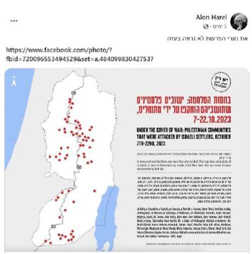 פרסומיו של פרופסור אלון הראל נגד המתנחלים. | צילום: מסך מתוך פייסבוק