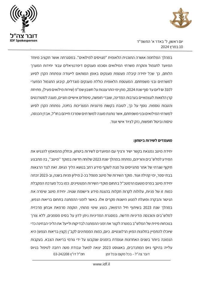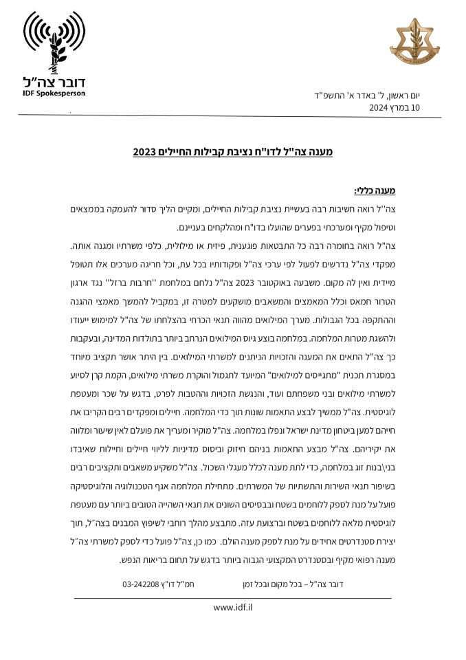 תגובת דובר צה"ל