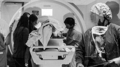 במקביל, מדענים נעים בתוך חדר תצפית קטן, בודקים סריקות מוח במסכי מחשב, מכיילים מדידות, משנים נקודות נתונים. קרני גלי אולטרסאונד נורות לתוך חלק זעיר במוח של האישה - טיפול ניסיוני שחוקרים מקווים שיאפס את מוחה ויקל על החשק שלה לצרוך סמים.