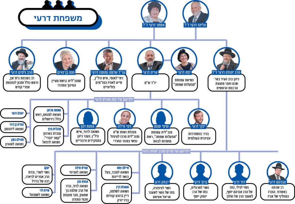 בית אחד בבאר־שבע כינס אליו בימים האחרונים את כל צמרת המדינה. בכירי הפוליטיקאים, גדולי הרבנים, אנשי עסקים וראשי מערכת הביטחון, כולם באו בשערי הבית ברחוב עמרי 8 בשכונה ו', כדי לנחם את יו"ר מפלגת ש"ס אריה דרעי, על פטירת אחיו הגדול הרב יהודה דרעי, רב העיר באר־שבע, שהיה מועמד לתפקיד הרב הראשי לישראל.