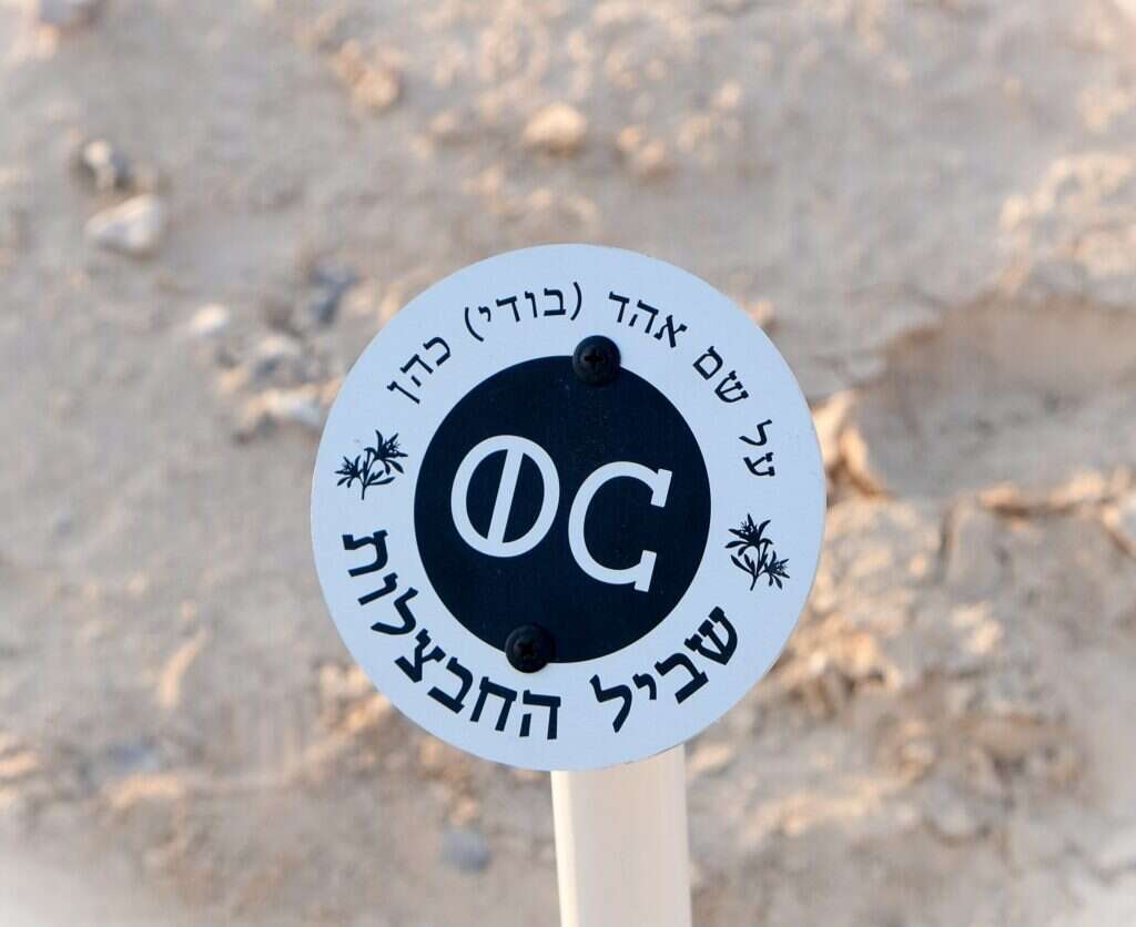 לאורך השביל הוצב שלט הנצחה לזכרו עם סיפור חייו של אהד ז"ל, וכן שלט עם המשפט המזוהה עימו: "בכל משבר או אתגר בחיים שלי, אוהב לצאת למדבר, לחווארים, ליד הבית, ופשוט להתמודד כשזה רק אני והמדבר עם האמת האישית שלי בלי שום מסכות".