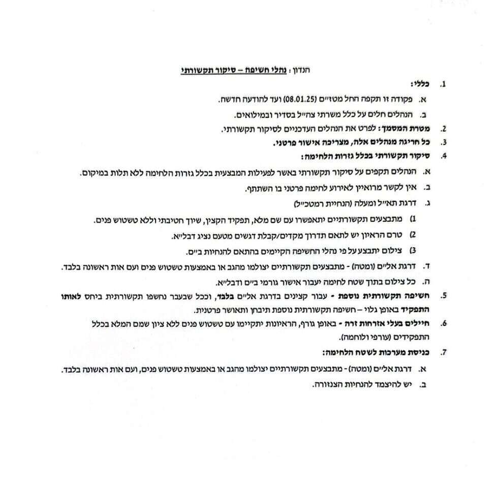 לגבי סיקור תקשורתי בכלל גזרות הלחימה ללא תלוי במיקום, אין לקשר למרואיין אירוע לחימה פרטני בו השתתף. דרגות אלוף משנה ומטה יתראיינו מהגב או בטשטוש פנים ועם אות ראשונה בלבד. דרגות תת אלוף ומעלה יוכלו להתראיין בפרטים מלאים – שם מלא, תפקיד הקצין, שיוך חטיבתי וללא טשטוש פנים. בנוסף, טרם הראיון יתבצע תדרוך וקבלת דגשים מנציג דבל"א וצילום יתבצע על פי נהלי החשיפה הקיימים בהתאם להתניות ביטחון המידע. כמו כן, כל צילום בשטח לחימה יעבור אישור ביטחון מידע ודבל"א.