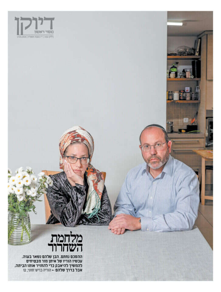 הדירה של משפחת מור שוכנת בקומה העליונה של בניין מגורים בקריית־ארבע. צביקה גדל בבני־ברק, אפרת בירושלים. הם עברו אל הקריה כשנישאו, וכאן נולדו כל שמונת ילדיהם, וגם הנכד. תמונותיו של איתן, הבן הבכור, מחייכות בבית מכל פינה. חלקן נראות כאילו הודבקו ברישול, הונחו באופן עראי על ארון הספרים, מחכות שיגיע הרגע להוריד אותן. ליד דלת הכניסה עומדות כמה שקיות כהות גדולות: ציוד של איתן שההורים אספו לאחרונה מהדירה שבה התגורר בנחלאות, לאחר שהשותף שלו החליט לעבור משם הלאה. עד לאותו רגע ההורים שילמו את שכר הדירה עבור איתן, כשומרים לו את החדר שעזב. לא היה פשוט לאסוף את חפציו האישיים, לארוז עבורו את המקום שבו התגורר, אומרת אפרת. אבל בכל מקרה, לאחר שאיתן יחזור היא תרצה שיגור קודם כול קצת בבית, אצלם. "אני לא אוותר לו", היא מחייכת. "והאמת, לא נראה לי שיזיז לו לאן הוא חוזר. העיקר שיבוא וירגיש את האהבה של כולם".