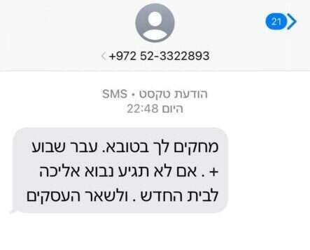 אך האיומים לא פסקו. השבוע קיבלו בעלי היקב SMS נוסף (שגיאות הכתיב במקור): "מחקים לך בטובא. עבר שבוע+. אם לא תגיע נבוא אליכה לבית החדש. ולשאר העסקים". על אף האיום החוזר ומעורבות המשפחה והבית באיומי הסחיטה, משפחת בוז'ו, מסרבת להיכנע ומשיבה מלחמה.