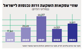 והנה, סוף סוף קיבלנו הזדמנות לבחון אותם. בשבוע שעבר פרסם הכלכלן הראשי במשרד האוצר דו"ח שבחן את "ההשקעות הזרות בישראל ובעולם לשנת 2023, לצד נתונים ראשוניים לשנת 2024". ובכן, מתברר שלפי נתוני המאגר, "בשנת 2023 כולה נרשמו עסקאות השקעה זרות בהיקף כולל של כ־32.9 מיליארד דולר, עלייה של כ־40% בהשוואה לשנת 2022 שבה נרשם היקף השקעות כולל של כ־23.5 מיליארד דולר". עיניכם הקוראות, בניגוד להפחדות זרמו לכאן כמעט 10 מיליארד דולר יותר בשנת הרפורמה. עם יד על הלב, ראיתם סיקור בהיקף הראוי של הנתון הזה?