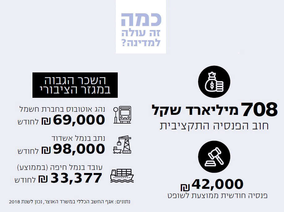 למיליארדים של הפנסיה התקציבית חייבים להוסיף גם את בעלי השכר הגבוה במגזר הציבורי - אותם מלגזנים, סבלים וסדרני עבודה בנמלי ישראל שמרוויחים 60, 70 ו־80 אלף שקל בחודש, וכך גם בכירי האוניברסיטאות וקופות החולים. כעת הם יידרשו 'לתת כתף' ולספוג את קיצוץ משכורתם, הגדלת המיסוי והפסקת ההטבות המופלגות, מהלכים שיכניסו לקופה הציבורית מיליארדים.