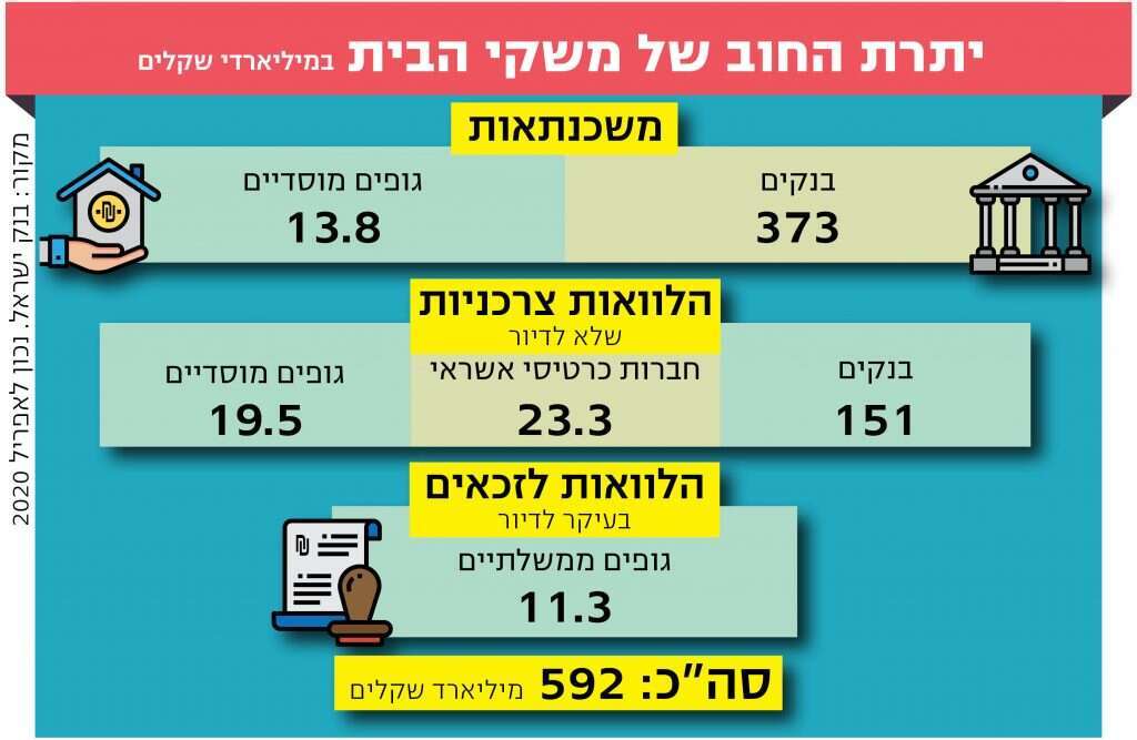 להלוואות הללו יש גם השלכות כמובן. יתרת החוב של משקי הבית ב"אשראי צרכני" (שלא לדיור) עמדה, נכון לחודש אפריל השנה, על 198 מיליארד שקל. המספר הזה לא כולל עוד 394 מיליארד שקל של חובות משכנתא. כלומר, כמעט 600 מיליארד שקל חובות.