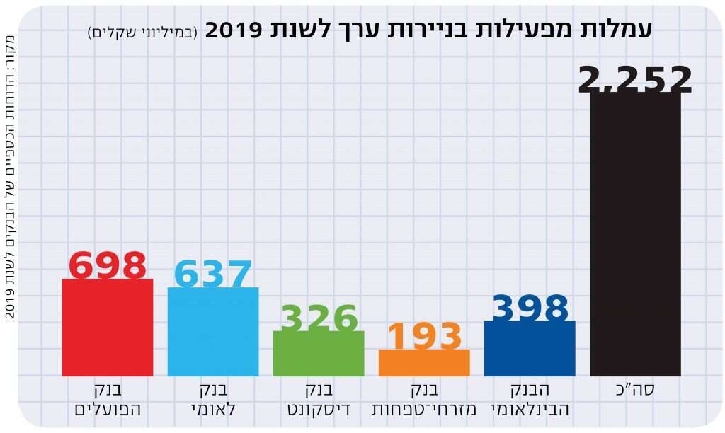 במחצית הראשונה של 2020 הכניסו חמשת הבנקים הגדולים בישראל כ־1.45 מיליארד שקל מעמלות ניירות ערך. זהו גידול של קרוב ל־20 אחוזים בהשוואה לתקופה המקבילה אשתקד. גם בתי ההשקעות עשו חיל בתקופה הזו ורשמו זינוק של עשרות אחוזים בהכנסותיהם, אם כי במספרים הסכומים צנועים יותר, בהתחשב בכך שרוב הכסף מנוהל עדיין בבנקים.