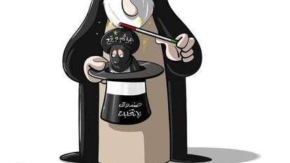 המנהיג הרוחני של איראן בקריקטורה מופיע כקוסם שמחזיק בידו כובע . הכובע מסמל את הקלפי בבחירות – צֻנְדוּק אלאנְתִחַ'אבַּאת.