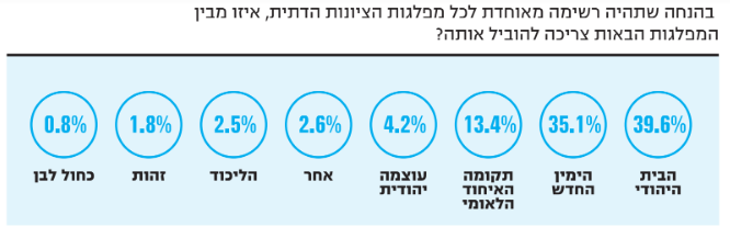 הסקר בוצע ע"יDirect Polls LTD באמצעות מערכת דיגיטלית אינטרנטית לצורך איסוף נתונים. הסקר נערך בתאריך 3.6.19 בין השעות 19.00-22.30, בקרב 1,370 משיבים מהאוכלוסייה הבוגרת בישראל (18+) מתוך 39,730 נדגמים המהווים מדגם מייצג של אוכלוסייה המגדירה עצמה בני הציונות הדתית, ואשר הצביעו למפלגות המזוהות עם הציונות הדתית בעבר ובהווה. טעות הדגימה: 2.9% + בהסתברות של - 95%.