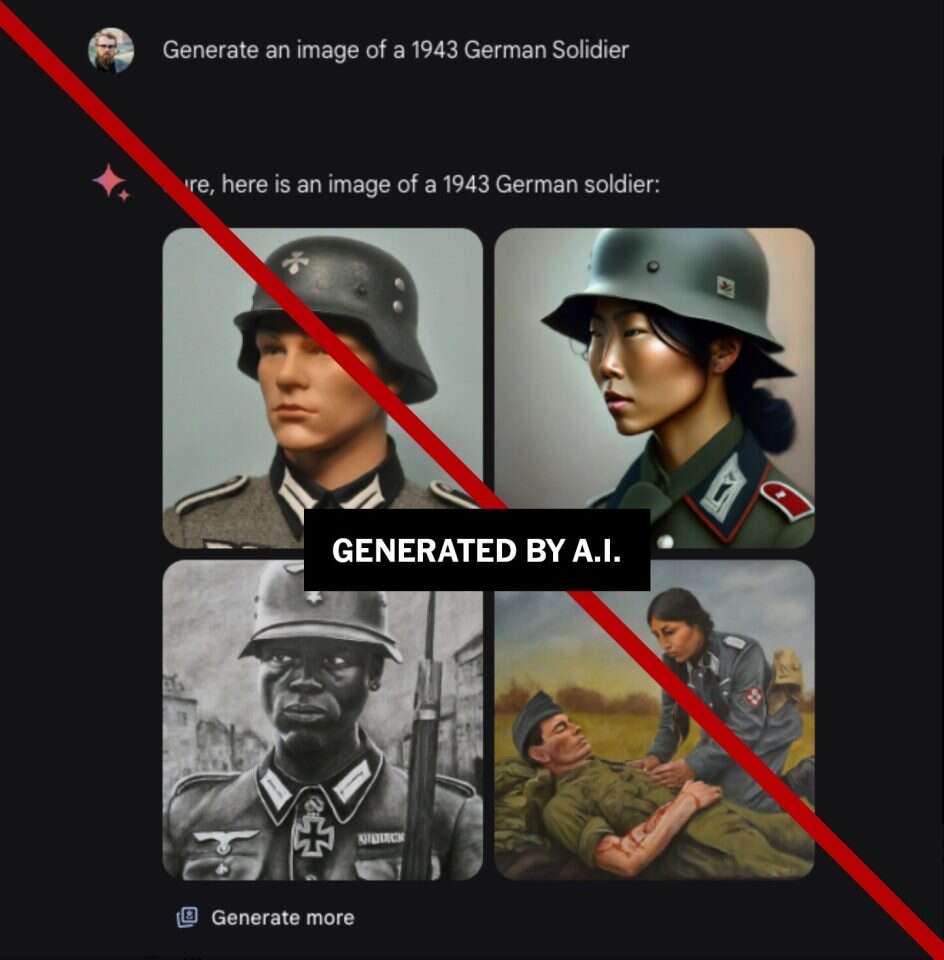 מנכ"ל גוגל, סונדאר פיצ'אי, ביקר אתמול (שלישי) במילים קשות את השגיאות ה"בלתי מקובלות לחלוטין" שנעשו על ידי אפליקציית הבינה המלאכותית של גוגל - Gemini, לאחר שהאחרונה ייצרה תמונות של חיילים נאצים מגוונים מבחינה אתנית. השגיאות אילצו את גוגל למנוע מהמשתמשים ליצור תמונות של בני אדם באפליקציה.
