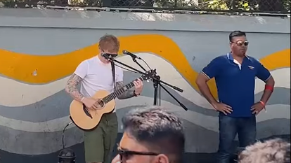 הזמר-יוצר הבריטי וזוכה ארבעה פרסי גראמי נמצא בסיבוב הופעות במדינה המאוכלסת ביותר בעולם, אך לקח אתמול (א') הפסקה בין ההופעות כדי לנגן בפני קהל מופתע ברחוב בעיר בנגלור המונה כ־11 מיליון נפש. סרטונים ששודרו ברשתות החברתיות מראים שוטר מנתק את המיקרופון שלו באמצע ביצוע של להיטו "Shape of You" ברחוב צ'רץ', מרכז קניות שוקק חיים.