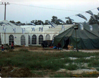 ושלא יהיה מקום לטעויות. לא מדובר בעסק פשוט. בפרק הזמן שבו שהו במתחם הם הקימו מתחם לתפארת. אוהלי לינה ענקיים הוקמו במקום, אוהל ענק הפך לסלון הקולקטיב בשעות הערב המאוחרות, קראוונים שהוצבו במקום הוסבו למטבח משותף, והכול בסיועם של מתנדבים רבים, בהם תושבי רמת הגולן ואפילו קיבוצניקים, שסביר להניח שקראו לפני כשנה לפינויים של הדיירים החדשים-ישנים מביתם ברצועה.