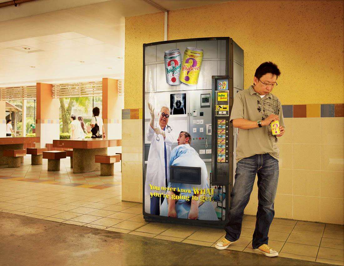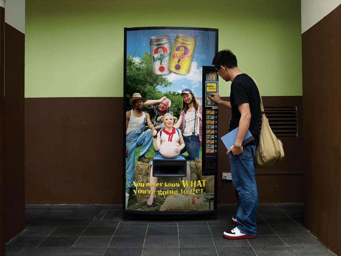 שימו לב לויז'ואלים המפתיעים. אחרי שלא השאירו לנו יכולת לבחור את טעם המשקה לפחות נתנו לנו לבחור מאיפה תצא הפחית. חדר לידה, פרוקטולוג או כובע של קוסם מפוקפק.