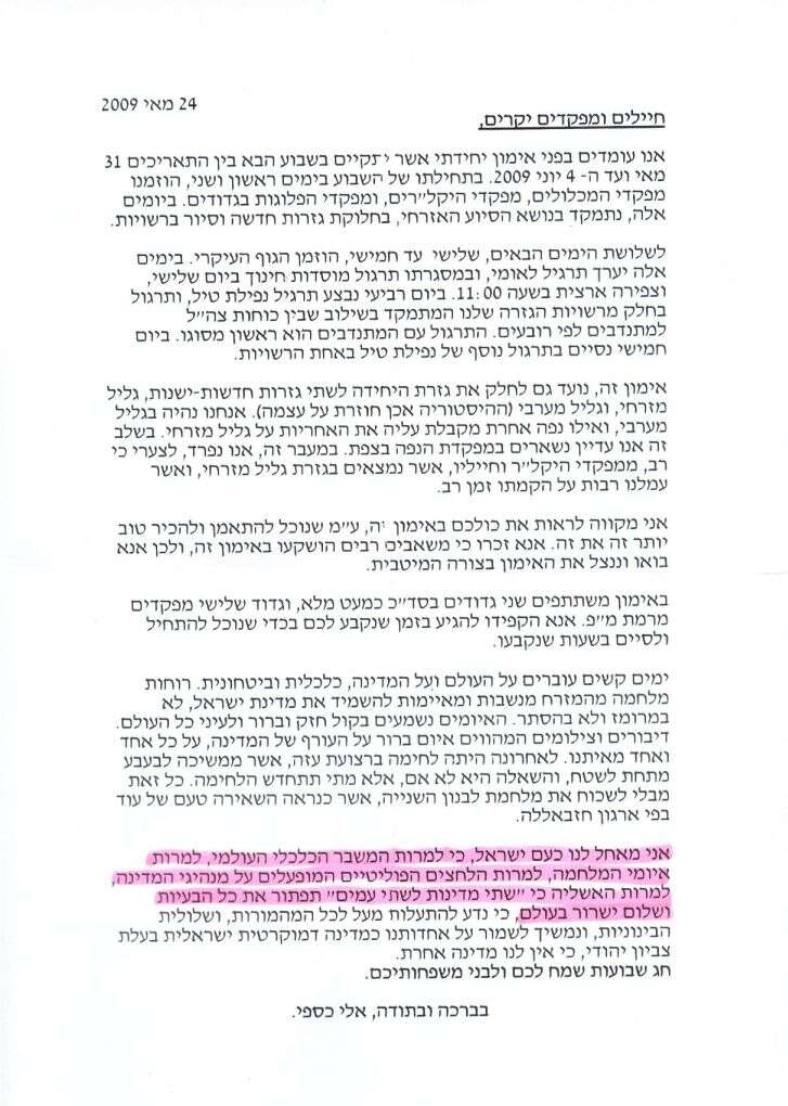 לקריאת המכתב המלא של אלוף משנה כספי - לחצו כאן
