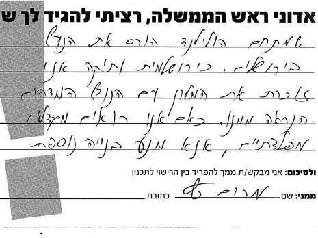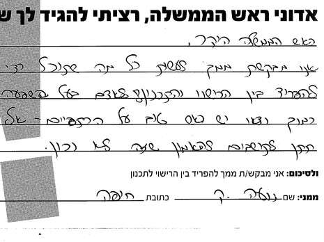 "אם לא תשמור על השטחים הירוקים ותבנה עוד מבנים שהורסים את הנוף ואת השטחים, לא יהיה ירוק בארץ ולא נוכל לחיות. עצור את הטירוף, בבקשה תמלא את בקשתי", כותבת עינב מירושלים. ואילו עפרה מבני ברק כתבה: "אנחנו רוצים לשמור את מעט השטחים הפתוחים שנותרו במדינה הזאת. מבקשים ממך להפריד בין רישוי לתכנון. לא ייתכן שכל ההחלטות החשובות יתקבלו בוועדה אחת".