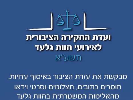 היום תפרסם מועצת יש"ע קריאה לציבור לפיה כל מי שמחזיק מידע אודות אירועי הירי בחוות גלעד מתבקש לפהגיע ולמסור עדות. הוועדה תאסוף את הצילומים שתיעדו תושבי החווה בעת הפינוי תגבה עדויות מפצועי האירוע ותנסה להגיע גם לעדויות של שוטרים שהשתתפו בפינוי. במועצת יש"ע מעריכים כי בעקבות מסקנות הוועדה לא יהיה מנוס מהקמת ועדת חקירה פרלמנטרית של הכנסת.