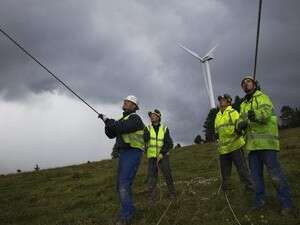 מתקינים טורבינת רוח. "ההסדרה שאושרה משדרת אופק, ודאות ויציבות לשוק שעבר טלטלות לא מעטות" צילום: רויטרס