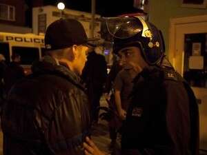 שוטר עם תושב צעיר בלונדון. צילום: אי-פי