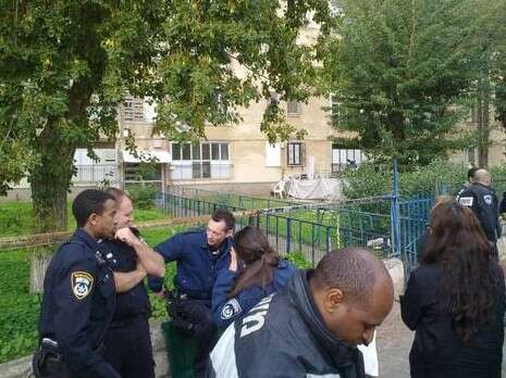 בני העדה האתיופית בזירת הרצח בראשון לציון צילום: נאור רהב