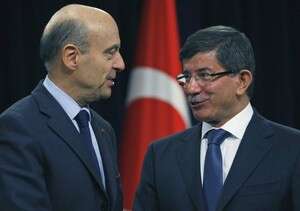 שר החוץ הצרפתי אלן ז'ופה עם עמיתו הטורקי אחמט דבוטולו צילום ארכיון: איי-פי