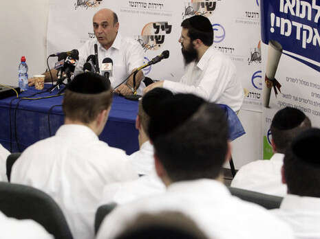 בהתייחסו לטענת אחד מהצעירים החרדים במקום, לפיה הפוליטיקאים "משסים אוכלוסיות שונות זו בזו", אמר: "אין לנו מלחמה עם הציבור החרדי, אנחנו בעד הציבור החרדי, בעד שילוב שלו באופן הדרגתי בתוך החברה הישראלית, והדברים הללו לא ייעשו ברגע אחד מהיום למחר, אך אנחנו צריכים לקבל החלטה נחרצת באשר לתוצאה בסוף