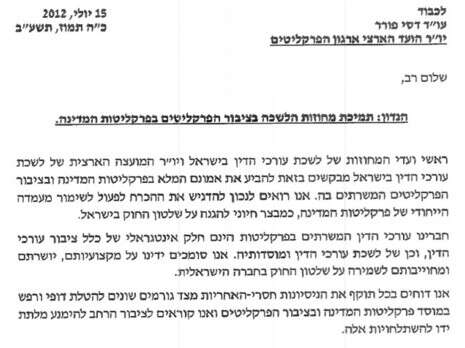 לשכות עורכי הדין חתמו על מכתב תמיכה בלדור