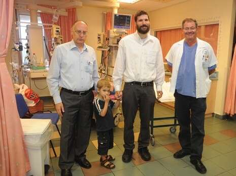 ד''ר זאב סוניס (מימין), האב נדב מיטב, בנו דוד וד''ר מסעד ברהום מנהל ביה''ח צילום: רוני אלברט – צילום רפואי – ביה''ח לגליל המערבי נהריה