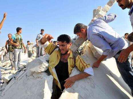 סוריה לאחר המתקפה האווירית. ''מחפשים עוד גופות'' צילום: איי-אפ-פי