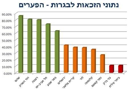 יישובים מבוססים כמו כוכב יאיר, הוד השרון ורעננה מככבים בעשירייה הראשונה בדירוג הזכאות, בעוד בקריית מלאכי, במגדל העמק ובאילת נרשמה ירידה חדה בשיעור הזכאים, ואת הרשימה סוגרים יישובים חרדיים וערביים. רק כ-48% מבני ה-18 זכאים