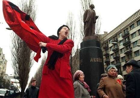המפגינים באוקראינה ניפצו את פסלו של לנין