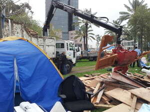 פקחי עיריית תל אביב הגיעו הבוקר למאהל שהוקם לאחר המחאה החברתית והרסו את המבנים. במקביל הם חילקו אוהלים למתגוררים בגינה
