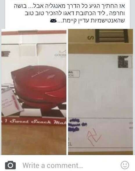 "במקום מתנה קיבלתי צלב קרס" סיפרה איילת, תושבת המרכז שהזמינה מכשיר לאפיית קאפ-קייס דרך הרשת ונדהמה לגלות את האנטישמיות שנשלחה אליה במיוחד בחבילה מבריטניה