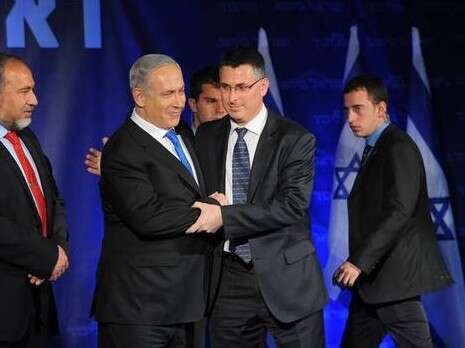 בנימין נתניהו וגדעון סער בגני התערוכה בערב הבחירות ראובן קסטרו