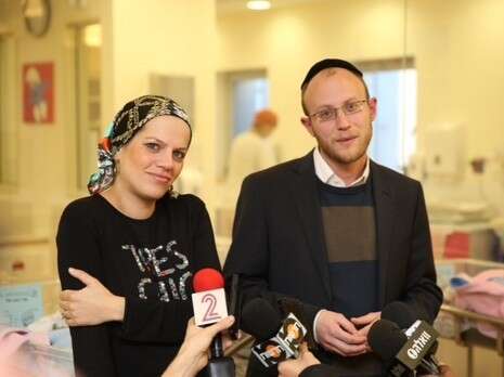 ההורים שמעון ומיכל, שאיבדו את בנותיהם יעל ואביגיל לפני כמעט שנה, חבקו היום בן נוסף בבית החולים "שערי צדק" – שבו טופלו באסון
