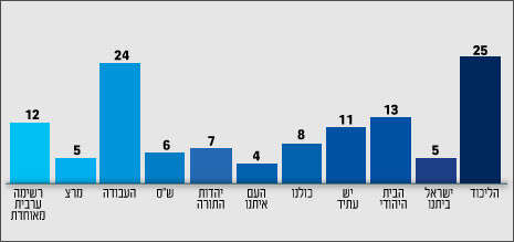 פרשת אוחנה פוגעת בבית היהודי שיורד בשני מנדטים ל-13 בלבד בסקר ערוץ הכנסת. המרוויח העיקרי הוא נתניהו שמתחזק בשני מנדטים ל-25