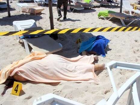 העדות לתופת שארעה לתיירים בתוניסיה מתחילה להיראות כאשר כתמי דם רבים ועשרות גופות נערמו על החוף.