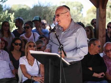 "מוטי, רק לפני שבועיים נפגשנו בתאטרון צוותא. כהרגלך היית מסמר האירוע. ביקרת ביקורות נוקבות, צחקת והצחקת, דיברת על חופש העיתונות וחופש היצירה. הייתה כל כך אתה, וכשנפרדנו איחלו שנה טובה ומתוקה והעיקר- הבריאות. תמיד ידעת להפתיע אותנו, אבל הפעם הגזמת מוטי", אמר הנשיא ריבלין, חברו הקרוב של קירשנבאום.